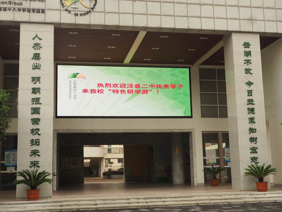 5月6日,星期天,中午十二点半,研学师生在学校集结后乘大巴出发,经过了长达4个多小时的车程,终于来到了期待已久的合肥名校四十八中(望湖校区),四十八中派专人为我们介绍了学校情况,同学们听的也很仔细。