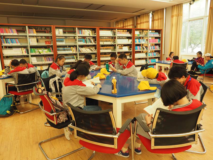 上午放学后,我们的师生安排在学校的图书馆就餐和休息。