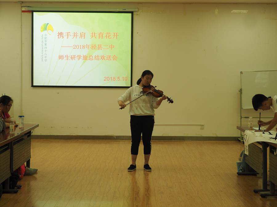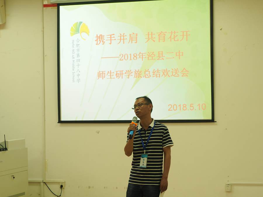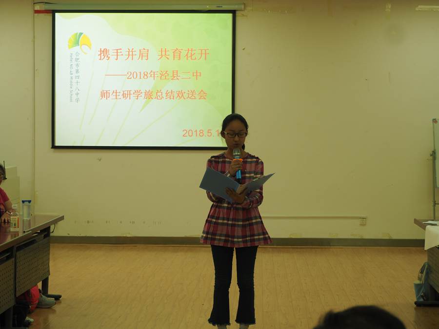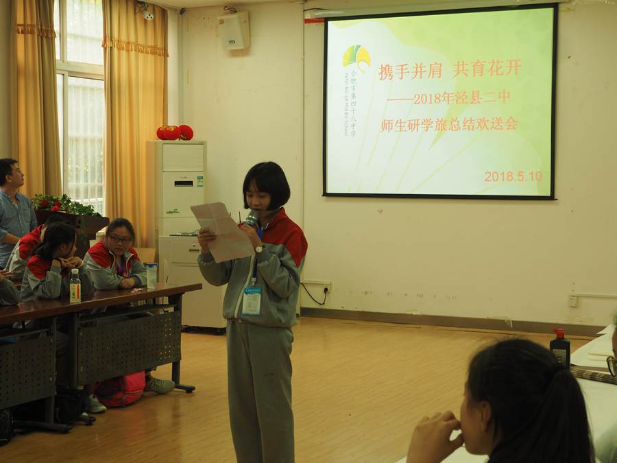 5月10日,星期四下午,学校课堂研学结束。合肥四十八中为我校师生举行了欢送会。两校师生代表交流了心得,表演了节目。