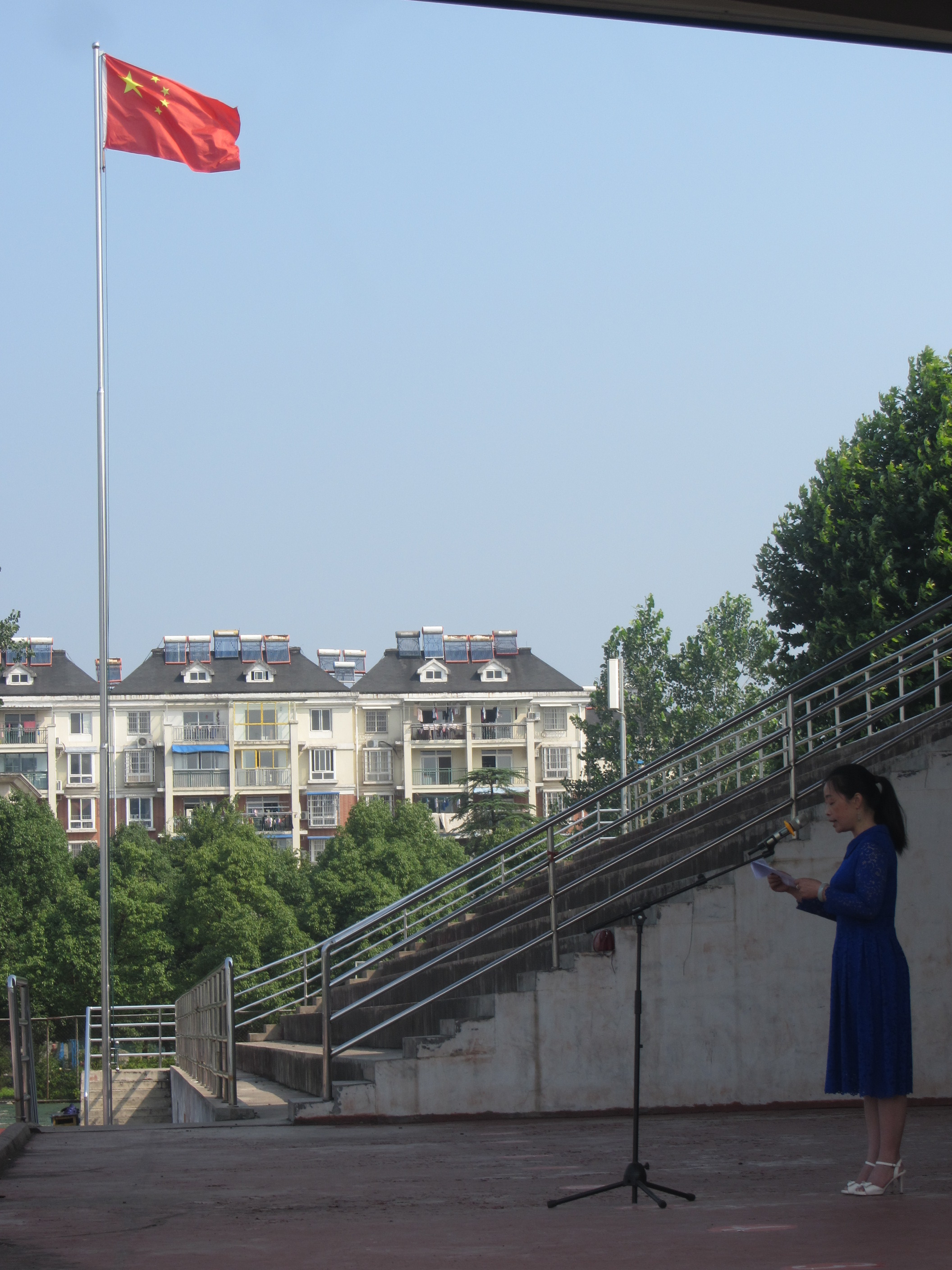 2018年6月11日,阳光明媚,全校师生在运动场举行升旗仪式。